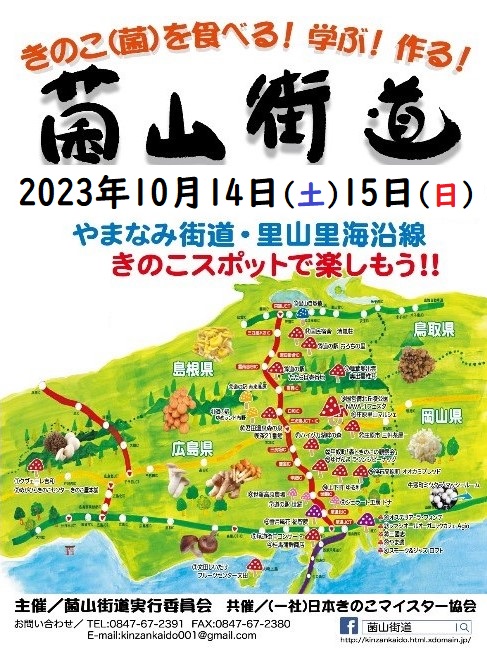 きのこ夜話in福智院3rd きのこ夜話in福智院3rd 築170年の宿坊カフェで、割烹ほう月の茸懐石弁当と特製椀物を頂きながら、熱くきのこを語り合う夕べ・・・🍄🍱 定員30名 参加費5千円 完全予約制 ご予約は福智院☎090-7286-9418 or菌山街道実行委員会まで (☎0847-67-2391、fax0847-67-2380、Facebook、e-mail) 尚、コロナ対策のため検温、マスク着用でお越し下さい🙇